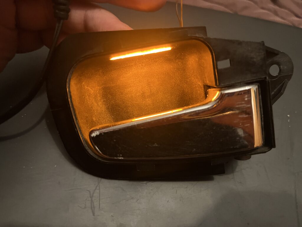 Afin d’ajouter un élément qui, à l’époque, n’était présent que sur les modèles BMW haut de gamme comme la E38, j’ai décidé de créer des poignées lumineuses inspirées de celles de la E38, intégrées dans des poignées Chrome Line.